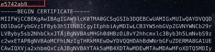 1.2 使用命令 openssl x509 -inform DER -subject_hash_old -in charles(名字为刚刚保存的证书).cer