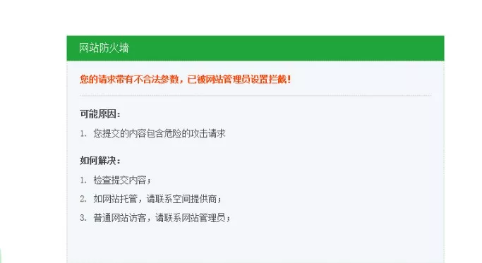 3、恭喜你,已经成功开启了防火墙!可以试着访问 http://你的网址/?id=../etc/passwd,页面会弹出拦截提示