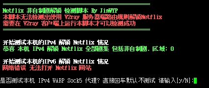 Netflix非自制地区剧情测试脚本。支持IPv6和Cloudflare WARP Sock5代理测试