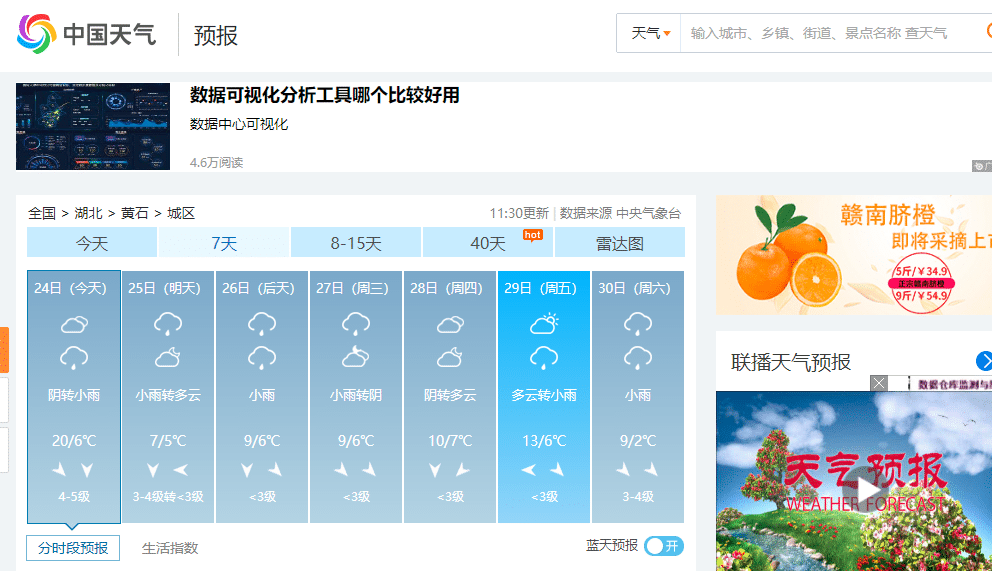首先,我们打开中国天气网,找到黄石市近7天天气的网页。