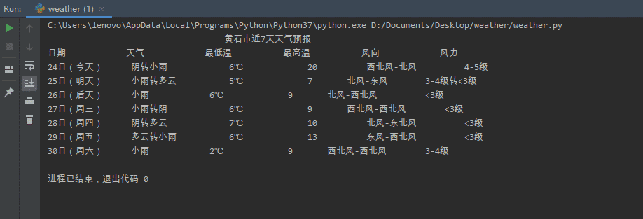 基于Python获取城市近7天天气预报