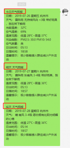 weather_str = '' #因为默认要输出三天的天气情况,所以我们需要创建一个空字符串,然后每迭代一次,就将天气情况拼接到空字符串中。
