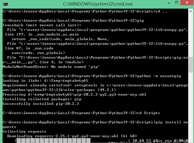 输入运行后如果出现错误“no module named pip”,则运行以下指令: