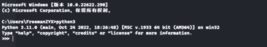 在终端中输入python3验证3.0版本的python环境