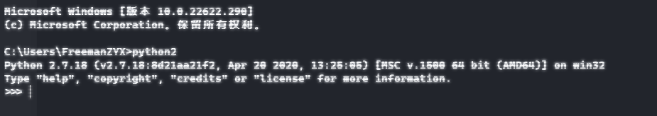 在终端中输入python2验证2.0版本的python环境
