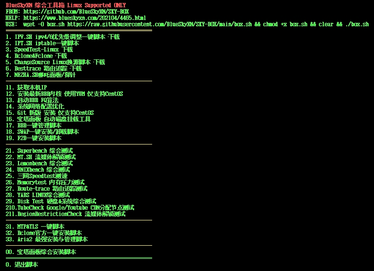 wget -O box.sh https://raw.githubusercontent.com/BlueSkyXN/SKY-BOX/main/box.sh && chmod +x box.sh && clear && ./box.sh