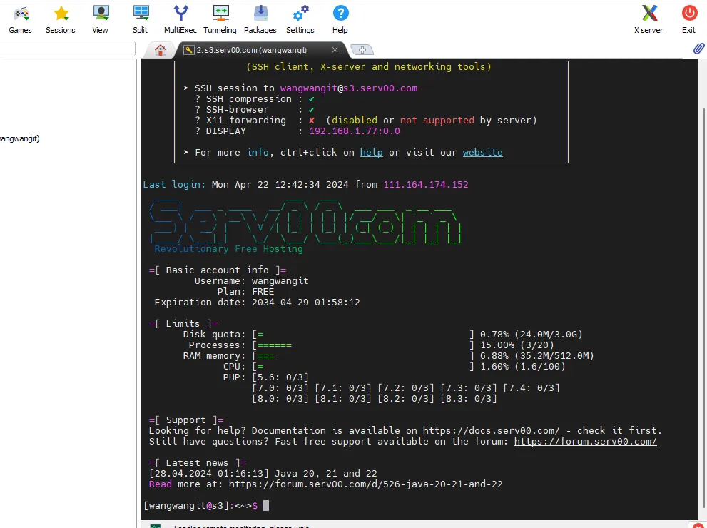 易于使用:用户可以通过Serv00的控制面板轻松管理自己的网站,无需深入理解复杂的服务器配置。 -
