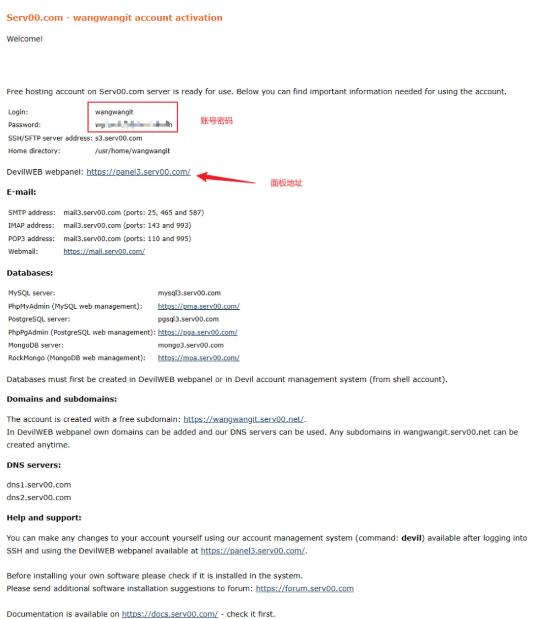 - 登录控制面板:使用注册的邮箱和密码登录Serv00的控制面板。