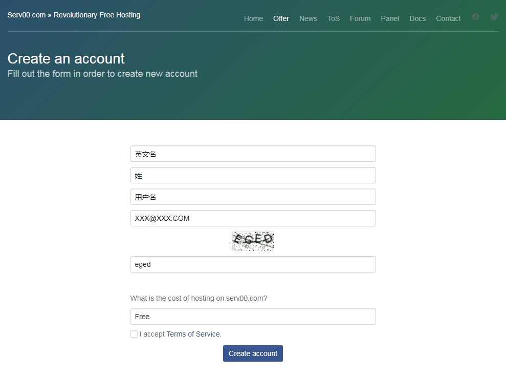 - 注册账号:访问Serv00官网进行注册,填写必要的个人信息。