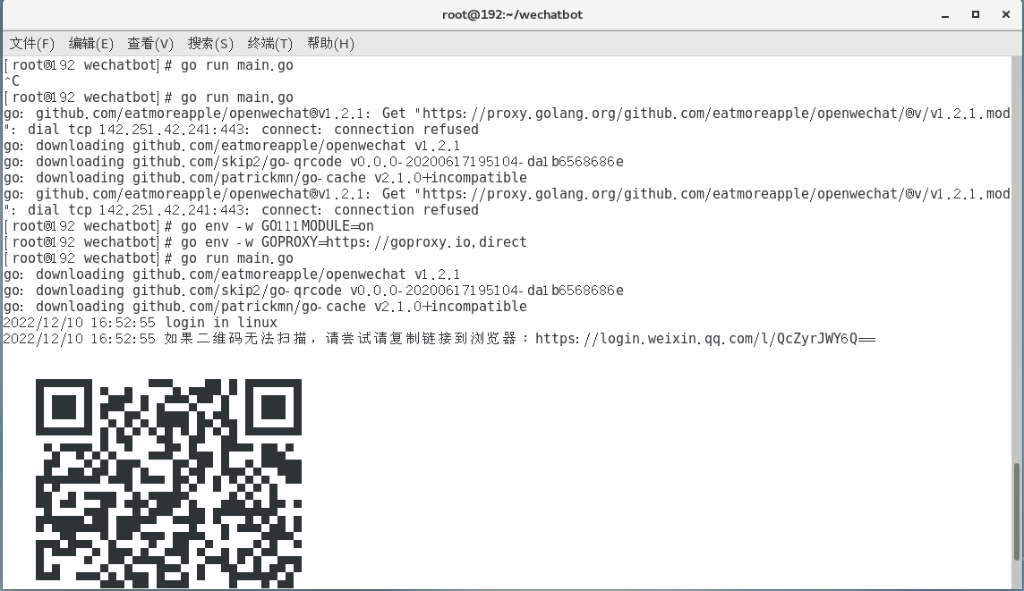 如果报错了,运行下面两行代码,然后再启动项目就可以了,启动成功会提示让扫码