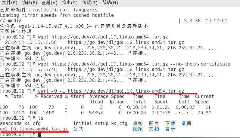 或者curl -O -L https://go.dev/dl/go1.19.linux-amd64.tar.gz如果第一种不行,就试试第二种