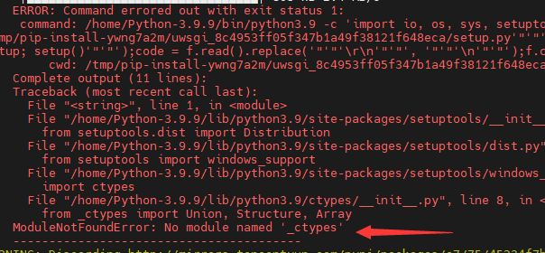 由于在CentOS7系统中没有安装外部函数库(libffi)的开发链接库软件包,所以在安装pip的时候就报了”ModuleNotFoundError: No module named ‘_ctypes’”的错误。